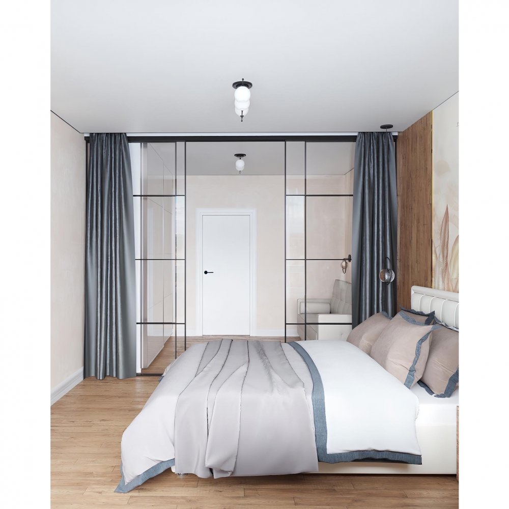 Перегородки алюминиевые / Раздвижные полотна стационарные и подвижные / Проект №2