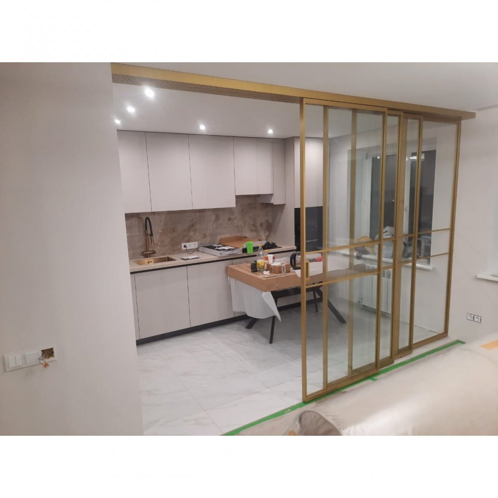 Перегородки алюминиевые / Раздвижные полотна стационарные и подвижные / Проект №8