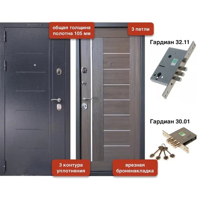 Входная дверь, модель «VD-101 105 мм. Букле чёрный / Венге 3 контура»